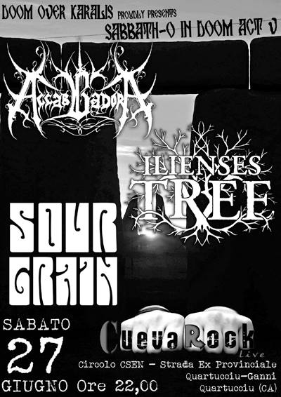• 27/06/2015 – Sabbatho in Doom act. V: Accabbadora, Ilienses Tree, Sour Grain, CuevaRock – Quartucciu (CA), facebook event, flyer