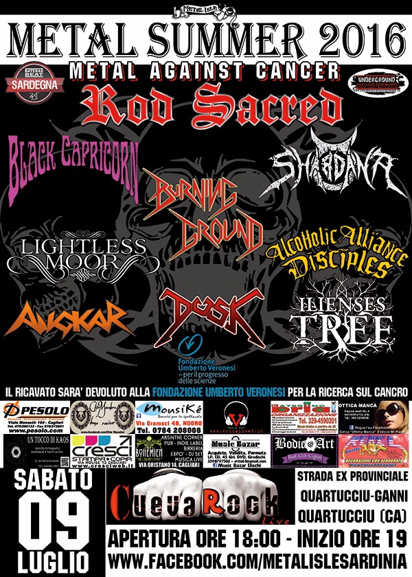 • 09/07/2016 – Metal Summer 2016 – Metal against Cancer, CuevaRock – Quartucciu (CA), facebook event, flyer