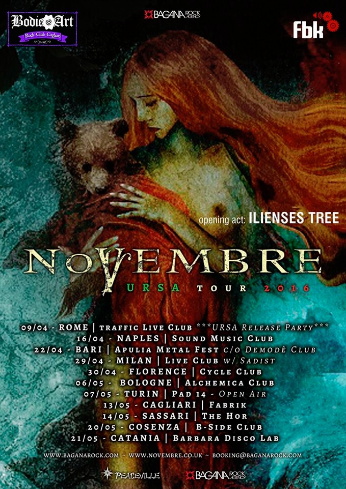 • 13/05/2016 – Novembre “Ursa Tour” – Opening act: Ilienses Tree, Fabrik – Cagliari (CA), facebook event, flyer